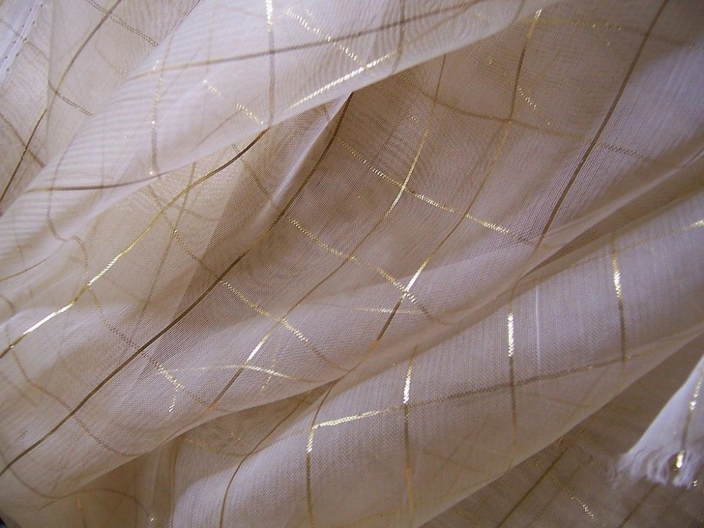 ITEM DESCRIPTION :A gorgeous rich elegant viscose chiffon in off white that has a metallic gold windowpane design that is a FABULOUS fabric !!! A sophisticated rich off white color has that understated sheen & unmistakeable glow !!!! you’ll be the cynosure of all eyes inTHIS !! This lovely fabric that will make to most fabulous dress, gown, top or skirt you can imagine !!!!! This is very rich & elegant !!! Retailed for $20 per yard ! Perfect for weddings or evening gowns ! Just fabulous ! QUANTITY : 4.8 yds WIDTH : 42 inch FIBRE CONTENT : viscose/lurex USES : gowns, dresses, tops etc !Payment and Shipping Info |