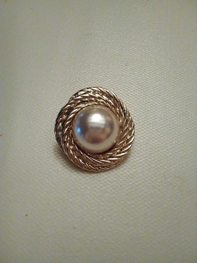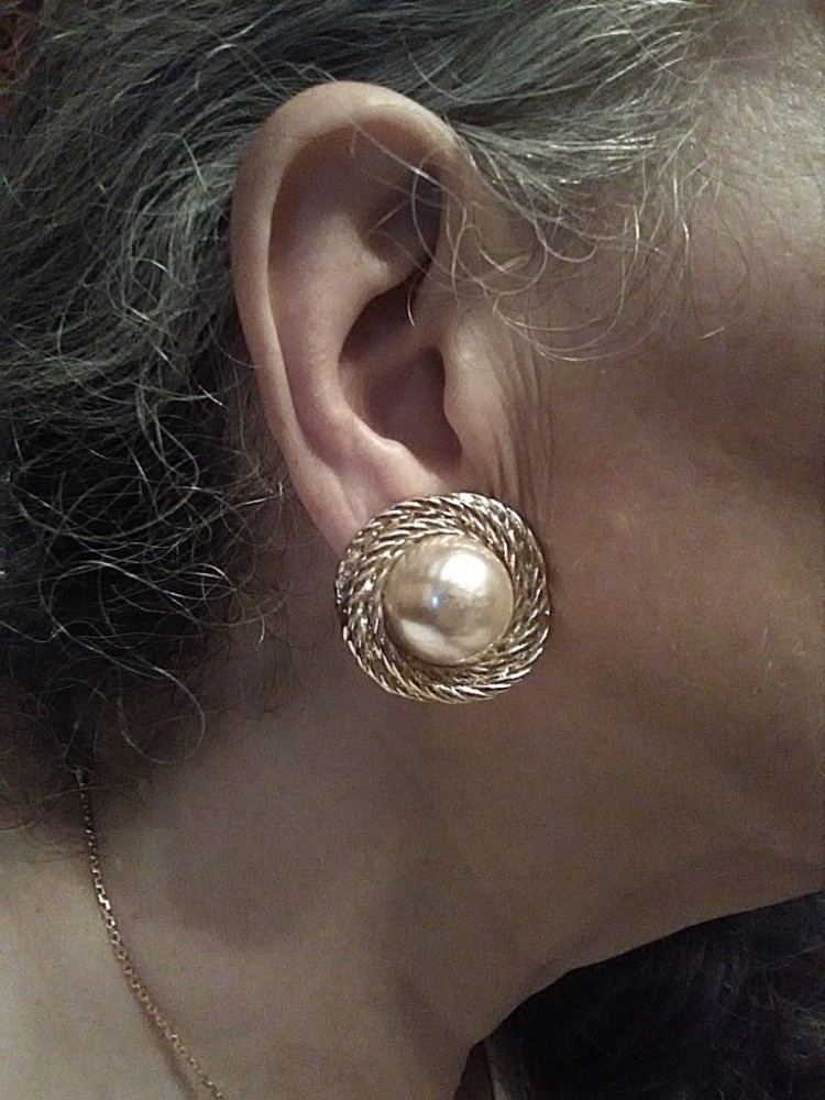 VINTAGE CLIP EARRINGS GOLD SWIRLED ROPES SURROUND PEARL CENTER