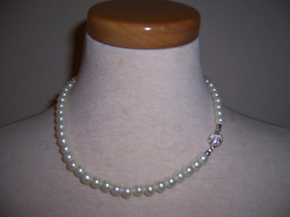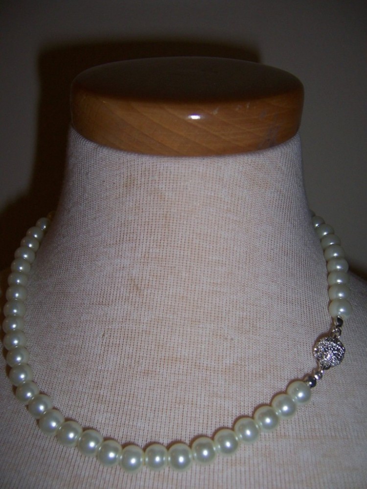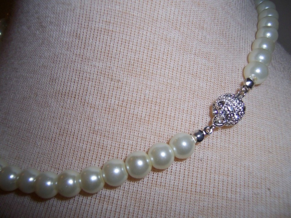 The perfect travel accessory ! Faux pearls in a single strand to wear for any occasion ! Wear the pave rhinestone clasp showing for a little glitz or just the pearls. The clasp is magnetic so its easy to put on. The faux pearls are strung on nylon so they are sturdy. Great for travel so you can look great & not worry if you leave then by mistake or lose them Dazzling accessories to complete the outfit! The necklace is very graceful and elegant ! JUST FABULOUS ! Absolutely gorgeous, elegant and very useful ! LENGTH : 17 inches Width : 1/3 inches Payment and Shipping Info |
