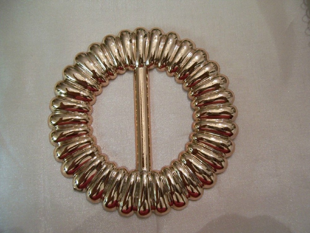 ITEM DESCRIPTION :You’ll love this ! A unusual Designer accent, this is a round decorative buckle in a metallic gold finish that can be used for a 1.5inch to a 1.75 inch belt strip ! A great closure that is functional and beautiful ! You can also use it to pull through a blouse hem at the hips to make it blouson on your body ! You can use this for the most stunning accent on jackets, skirts, pants, purses, picture frames, bags etc etc etc !!! With as many compliments as you will get , it will prove to be a great investment ! QUANTITY : 11 LENGTH : 3.5 inches WIDTH : 3.5 inches USES : accent suits, dresses, tops etc ! Payment and Shipping Info |