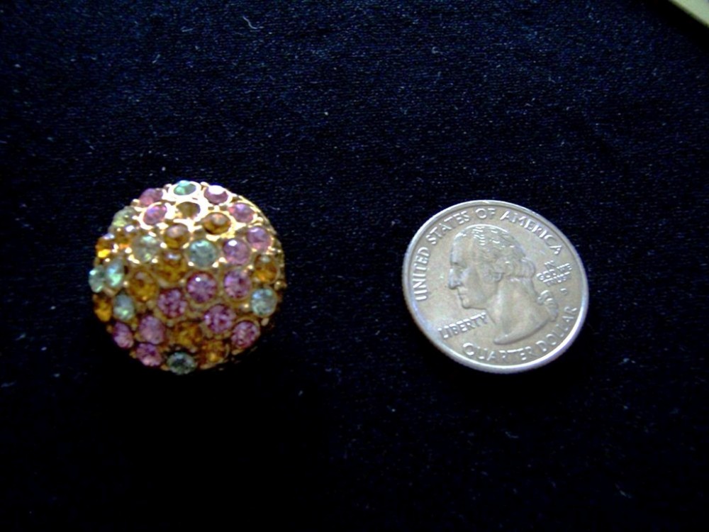 6 YELLOW PINK LT GREEN DOME RHINESTONE GOLD TONE BUTTONS 7/8″ IN SIZE #259