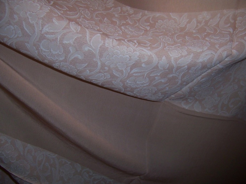 ITEM DESCRIPTION :You’ll love this ! Gorgeous 8.25 INCH WIDE OPAQUE WOVEN PANELS IN A FLORAL VINE DESIGN ON 7.25 INCHES OF SHEER GEORGETTE Very CHIC ! This sold for $30 a yard!! I made blouses & dresses with this. STUNNING!!!!