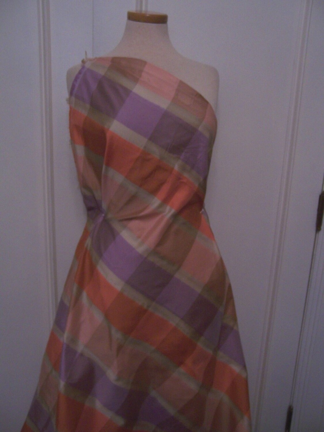 2yds BP#56 PINK LAVENDER ORANGE BEIGE SILK TAFETTA PLAID 2.75″ x 3″ BLOCKS DRESS HOME