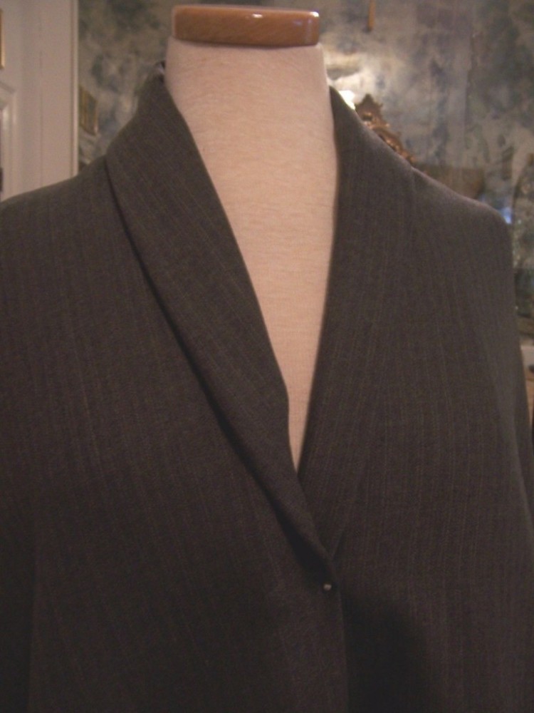 Classic pinstriped grey suiting of Lighter grey pinstripes on deep grey!